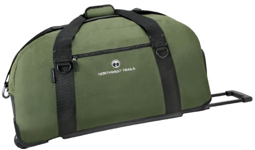 The northwest trails rolling gear bag offers you the best of both worlds. the duffel style is proven to be both versatile ande stylish to be used to carry your gear for anything from outdoor activities, to exercising, to travel. it has a large main compartment and an easily accessible exterior zippered pocket.the recessed in-line skate wheel system is constructed using high impact wheel housings for maximum protection and easy rolling durability. the lock-up & lock-down handle system has a centrally located push button for easy use. it locks in at two different height settings so you can find the one that works most comfortably for you. the handle can be lowered to store in its own hide-a-handle pocket. additional padding on the handles makes carrying heavy bags more comfortable. the retreat gear bag is constructed of water and tear resistant rip-stop polyester. this fabric has been designed to provide high durability and long lasting resistance to wear. the self-repairing nylon zippers with smooth-zip brand movement are easier than ever to open and close - even when the bag is fully packed.